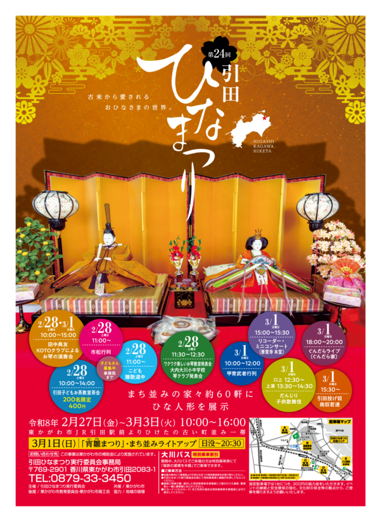 第24回「引田ひなまつり」開催日:2月27日(金)~3月3日(火)時間:10:00~16:00会場… -