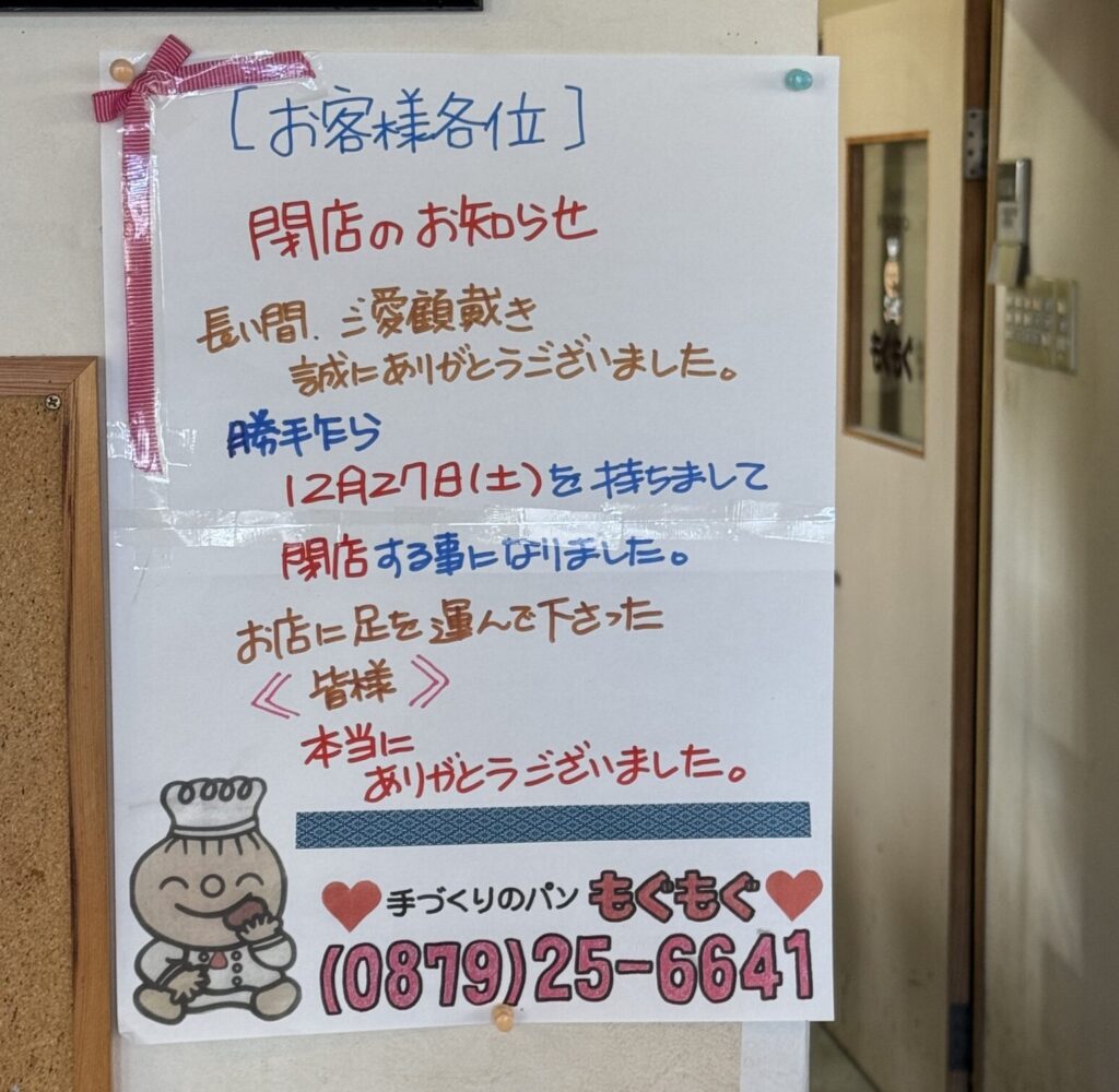 地域の人々の暮らしに寄り添い、焼きたての香ばしいパンで多くの朝を彩ってきた「てづくりのパン もぐもぐ」が、2025年12月27日をもって、31年間にわたる輝かしい歴史に静かに幕を下ろします。