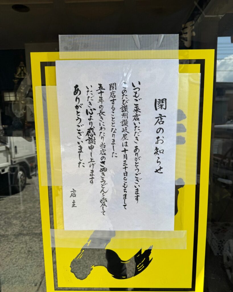噂は聞いていたが張り紙をみたらやっぱり閉まるんだと実感。 もうどこよりも熱々のうどんが食べられなくなるのか😭 最後の一杯まで、きっと変わらぬうどんで迎えてくれるはず!