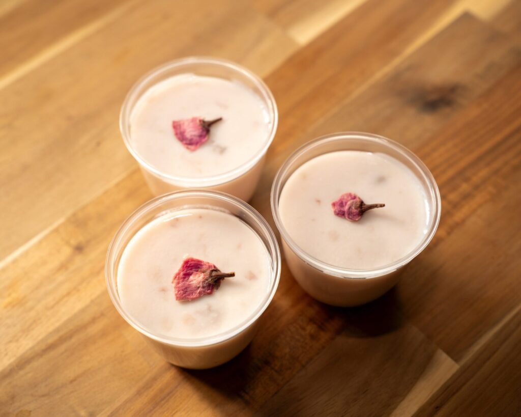 甘酒の優しい甘みと桜の香りが溶け合った一品。