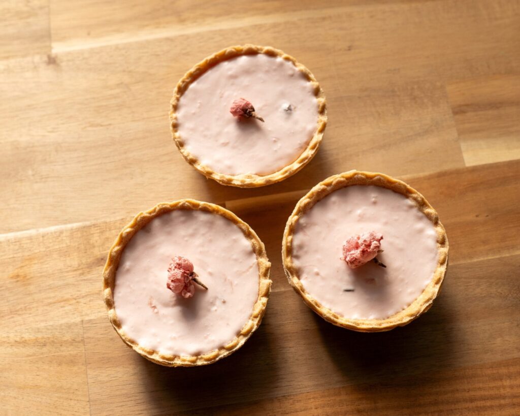 桜色が鮮やかな、小ぶりで満足感のあるタルト。