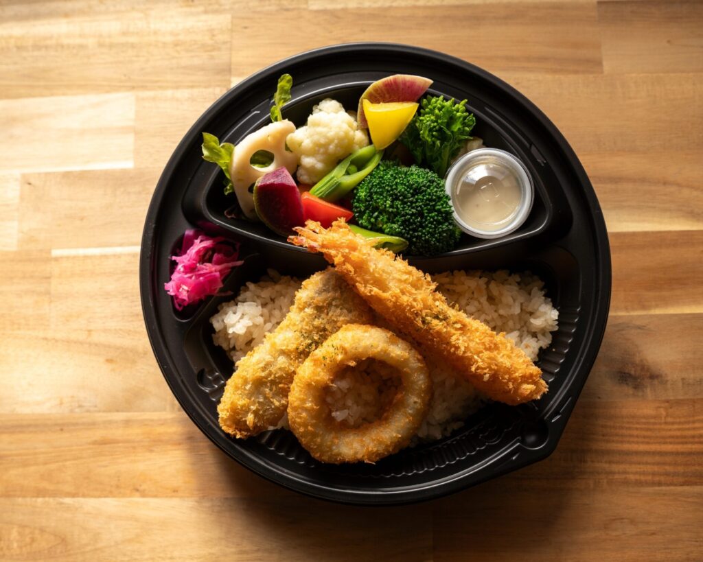 「醸匠 ま津風」さんのメニューは、野菜のカットや盛り付け一つひとつに丁寧な仕事が感じられます。 調理には一定の時間を要するため、事前の電話予約をしておくと、スムーズな受け取りが可能です。